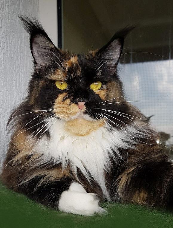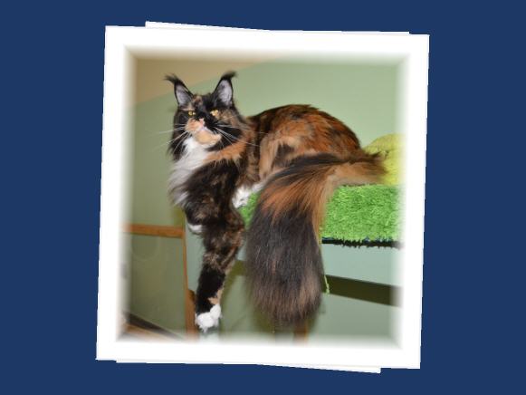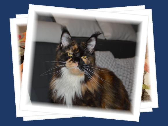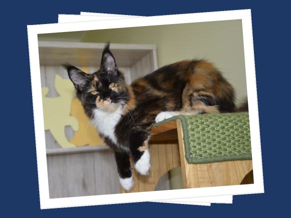 Farbe: black tortie white geboren am: 06.12.2015 Eltern: Evil Bold of Brendas Garden (red white) Bloomingtree Wakanda (black)